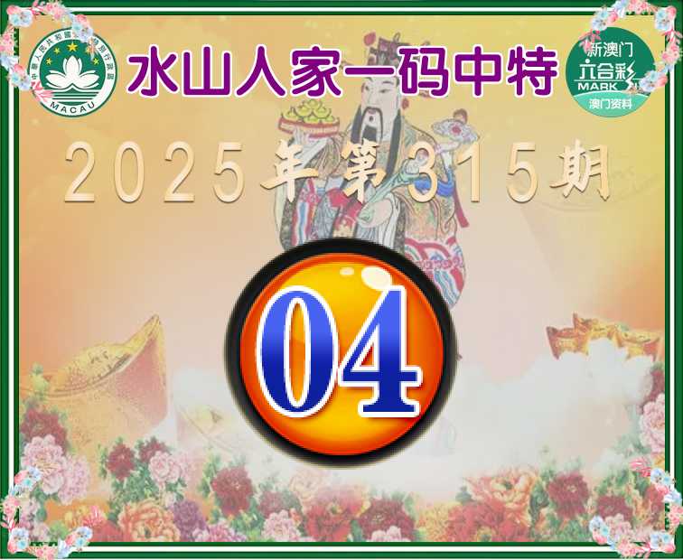 315期:【水山人家】 ♣️一码中特♣️【04】开:04