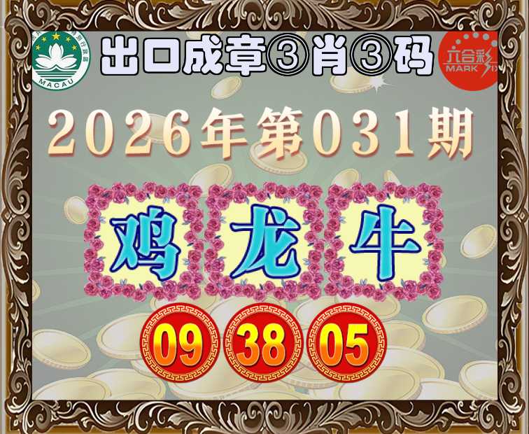 031期:『出口成章』 😳③肖③码😳【鸡牛】【09.38.05】开:龙26